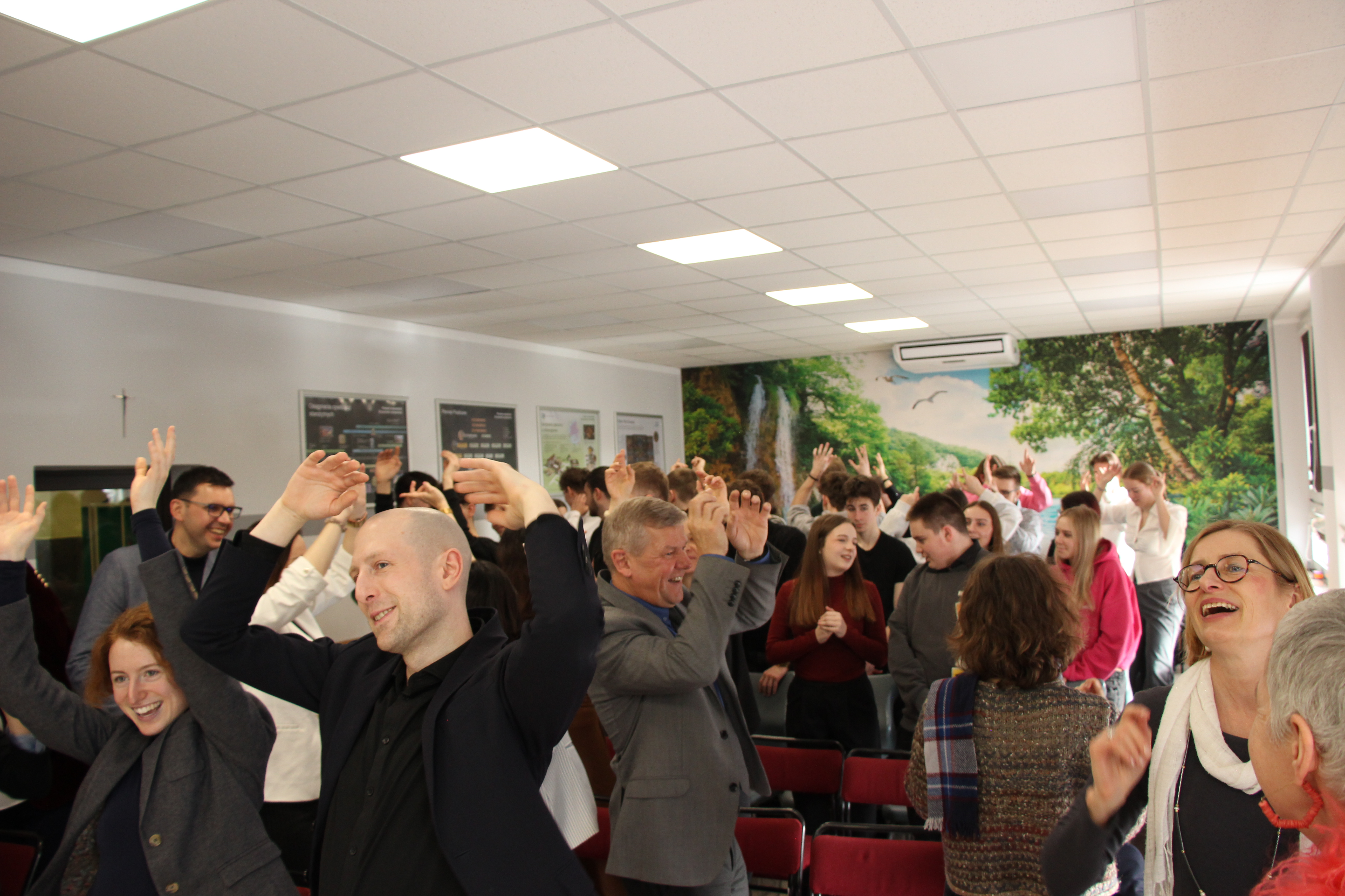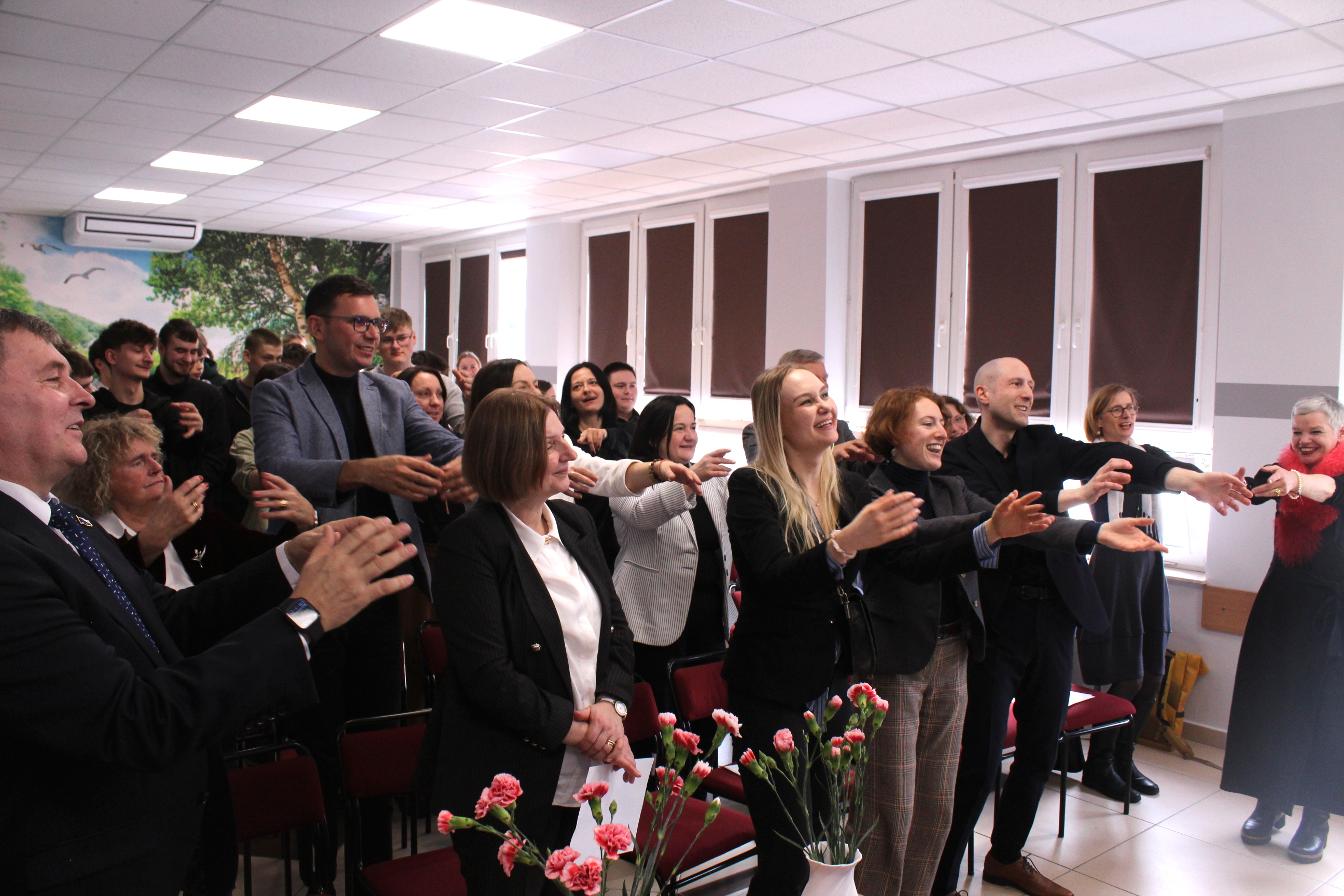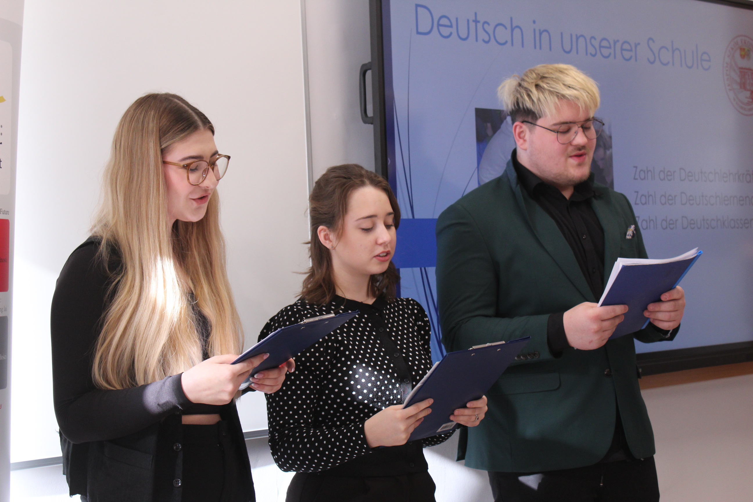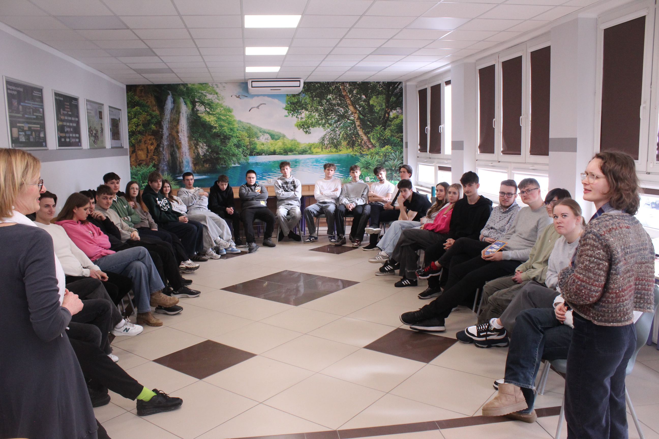 Uroczystość przyłączenia do sieci PASCH, która odbyła się 18 lutego 2026 roku, miała niezwykle podniosły charakter. Zaszczycili nas swoją obecnością przedstawiciele kluczowych instytucji partnerskich. Ambasadę Niemiec w Warszawie reprezentowali Thorsten Kerp, Magdalena Urban-Tomaševič oraz Anouk Kubenz. Z Instytutu Goethego przyjechały Anja Geissel, dyrektorka działu językowego, oraz Bodil Jessen-Klingenberg i Monika Bartyska, odpowiedzialne za inicjatywę PASCH. Firmę Siemens reprezentowała Dorota Różańska, natomiast Starostwo Powiatowe – wicestarosta Witold Sykutera, naczelniczka Wydziału Edukacji Małgorzata Stangel oraz etatowy członek Zarządu Powiatu Lucyna Herold.