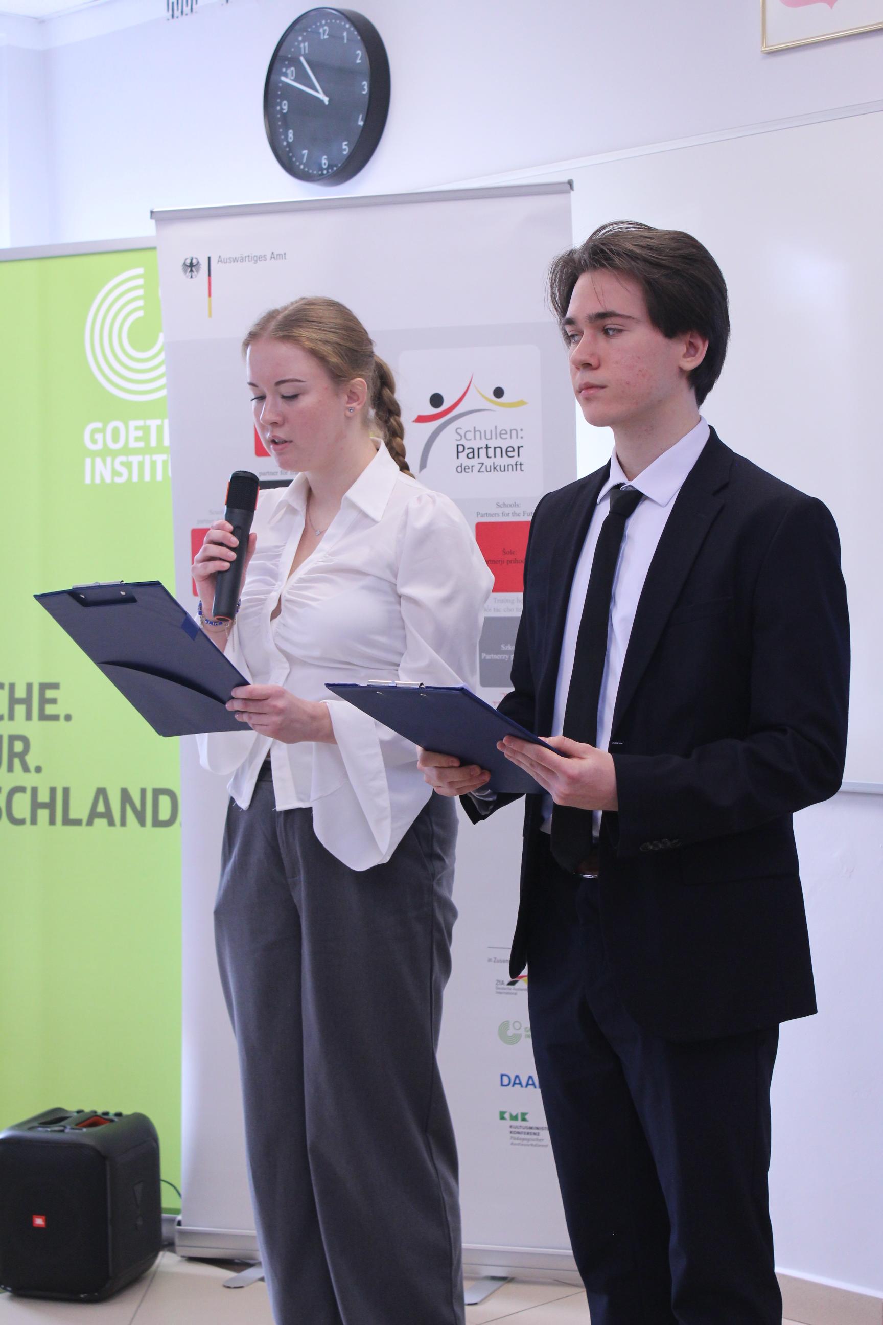 Nie byłoby tego sukcesu bez pracy naszych germanistek, jednak szczególne podziękowania kierujemy do uczniów, którzy zaangażowali się w przygotowanie uroczystości. Byli to: Milena Połtarzycka, Artem Mamczenko, Julia Drańczuk, Igor Kaliszewski, Oliwia Urmańska, Adrian Wilkowski, Julia Kuklińska, Michał Guzowski, Jarosław Stachowicz, Agata Gruchała, Martyna Kuchta oraz Szymon Fojut.