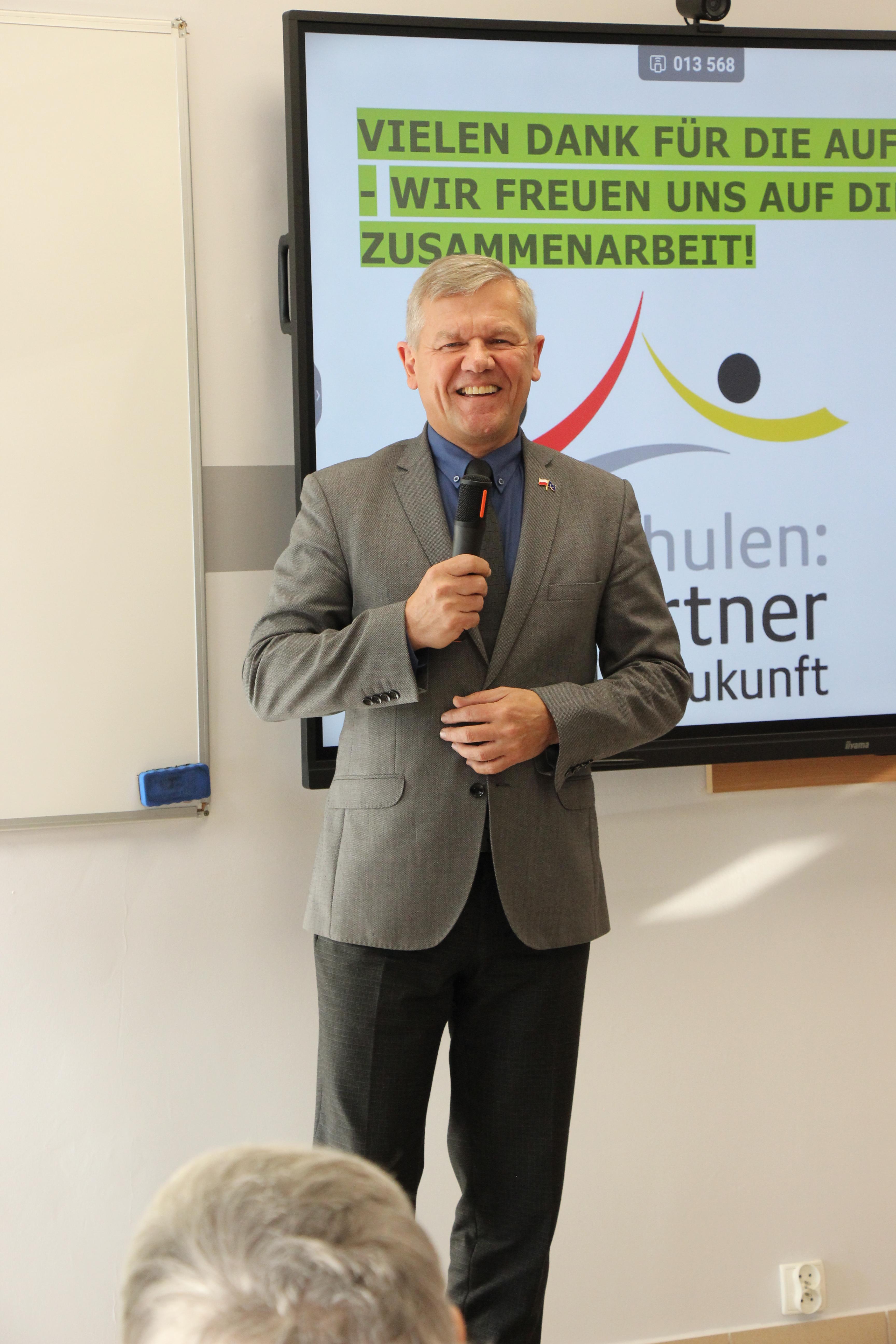 Spotkanie otworzył dyrektor szkoły, Tadeusz Burczyk, który w swoim wystąpieniu podkreślił znaczenie przystąpienia do sieci PASCH jako szansy rozwoju szkoły, uczniów oraz całej społeczności lokalnej.