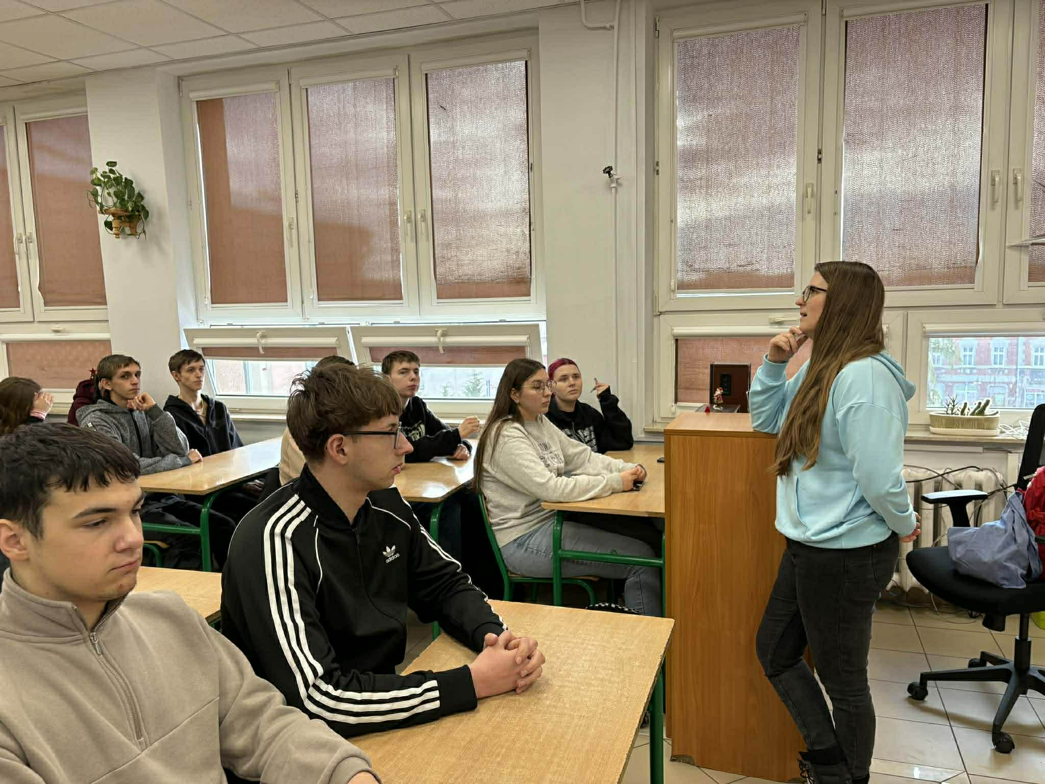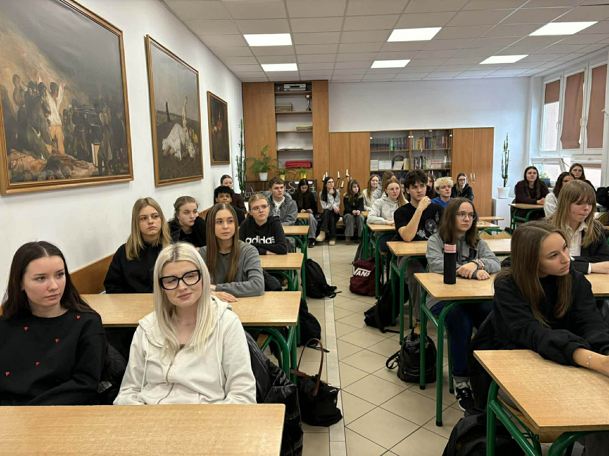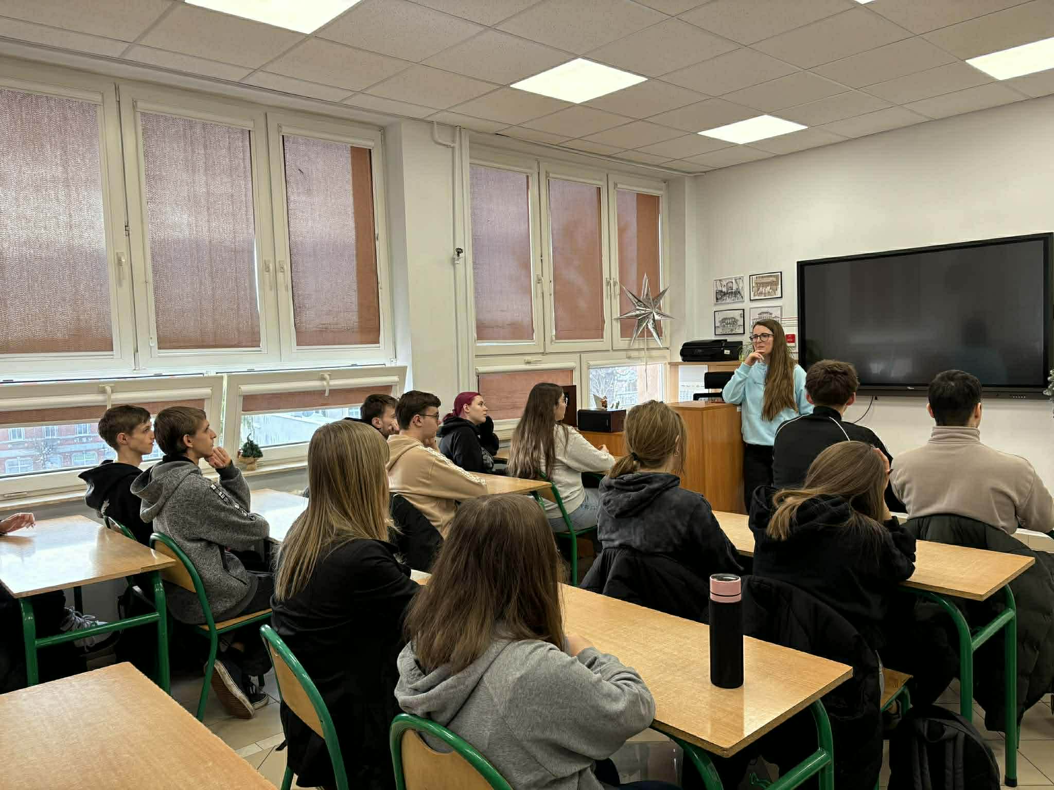 Spożywanie alkoholu w trakcie ciąży ma poważne negatywne skutki dla zdrowia zarówno kobiety, jak i rozwijającego się dziecka. Kobiety, które w ciąży piją alkohol, narażają swoje dzieci na ryzyko deformacji, upośledzeń intelektualnych oraz zaburzeń funkcjonowania narządów wewnętrznych. Spotkanie było bardzo ineresujące, młodzież brała aktywny udział, zadawała szereg pytań prowadzącej pani Małgorzacie Korolczuk. Dziękujemy serdecznie pani Alicji Ciecholewskiej z