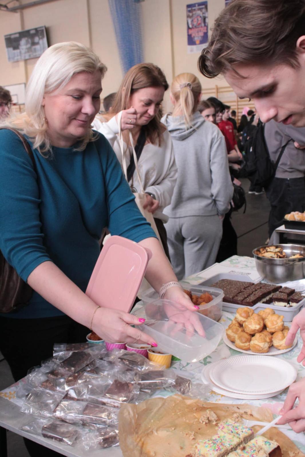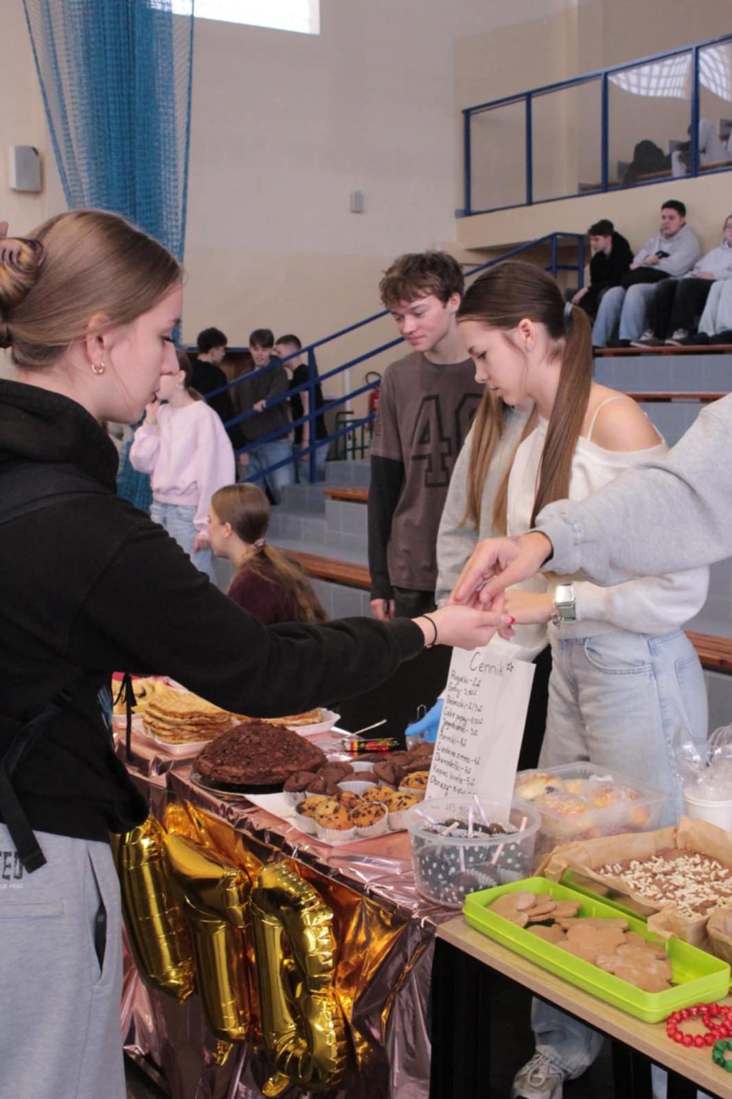 Hala gimnastyczna naszej szkoły wypełniła się zapachem domowych wypieków i gwarem rozmów osób o wielkich sercach. Na przygotowanych stoiskach można było znaleźć pyszne ciasta, rogaliki, pączki, babeczki, ciepłą pizzę i domowe przetwory przygotowane przez uczniów, ich rodziców oraz nauczycieli.
