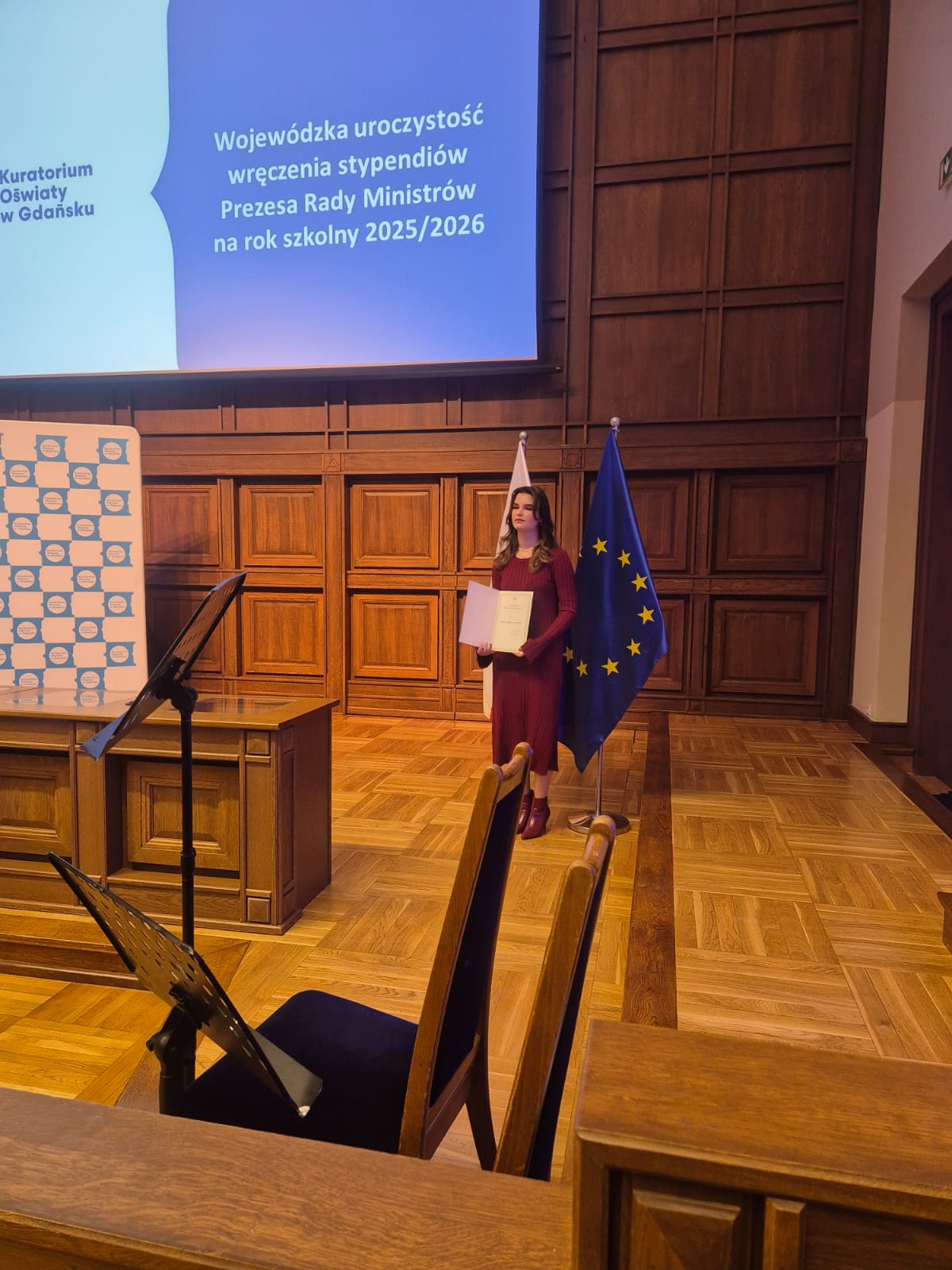 Wojewódzka uroczystość wręczenia dyplomów odbyła się w gmachu Politechniki Gdańskiej. Nasza uczennica odebrała dyplom z rąk Pomorskiego Kuratora Oświaty – Pana Grzegorza Krygera oraz Wicewojewody Pomorskiego – Pana Emila Rojka.