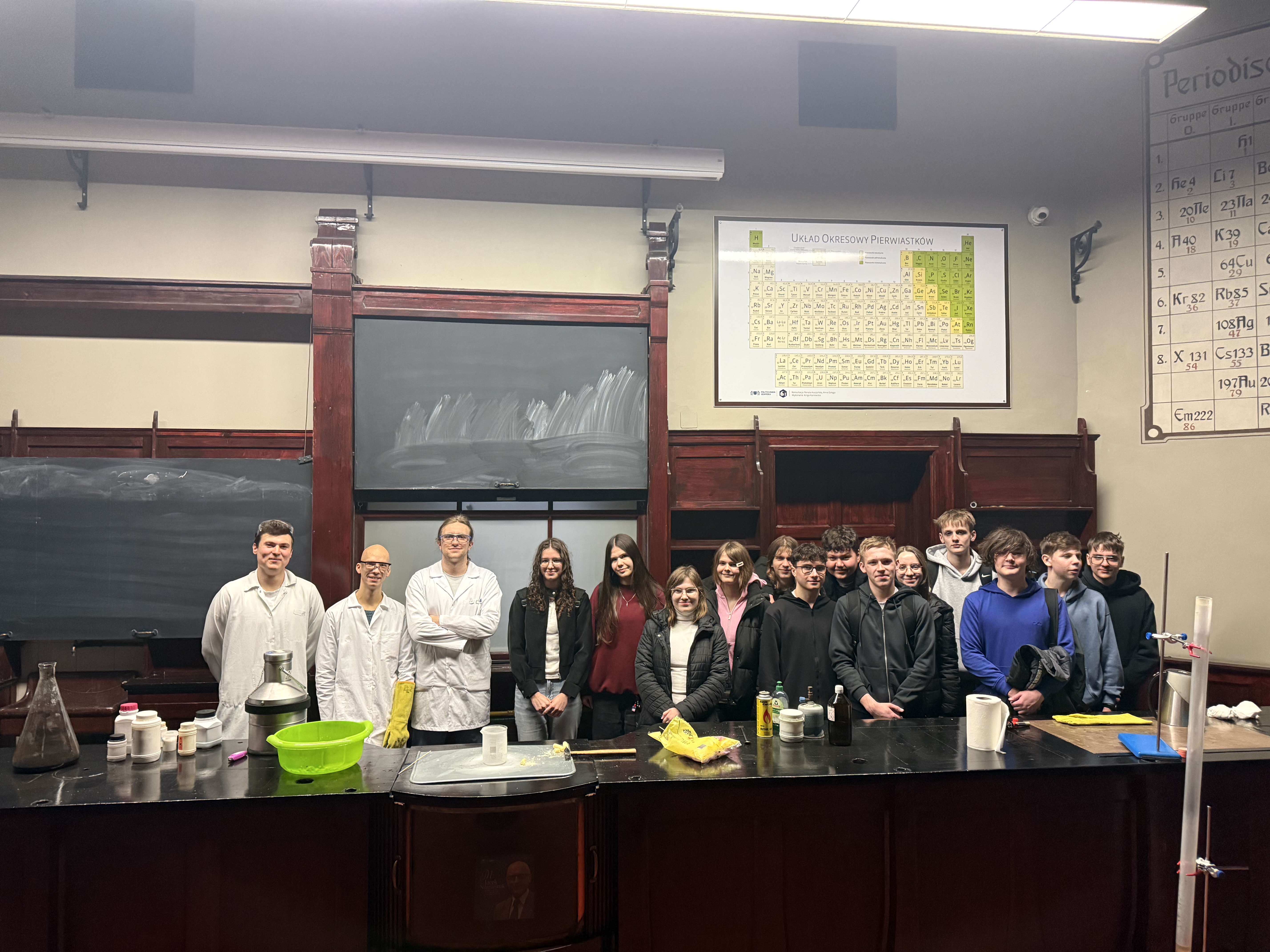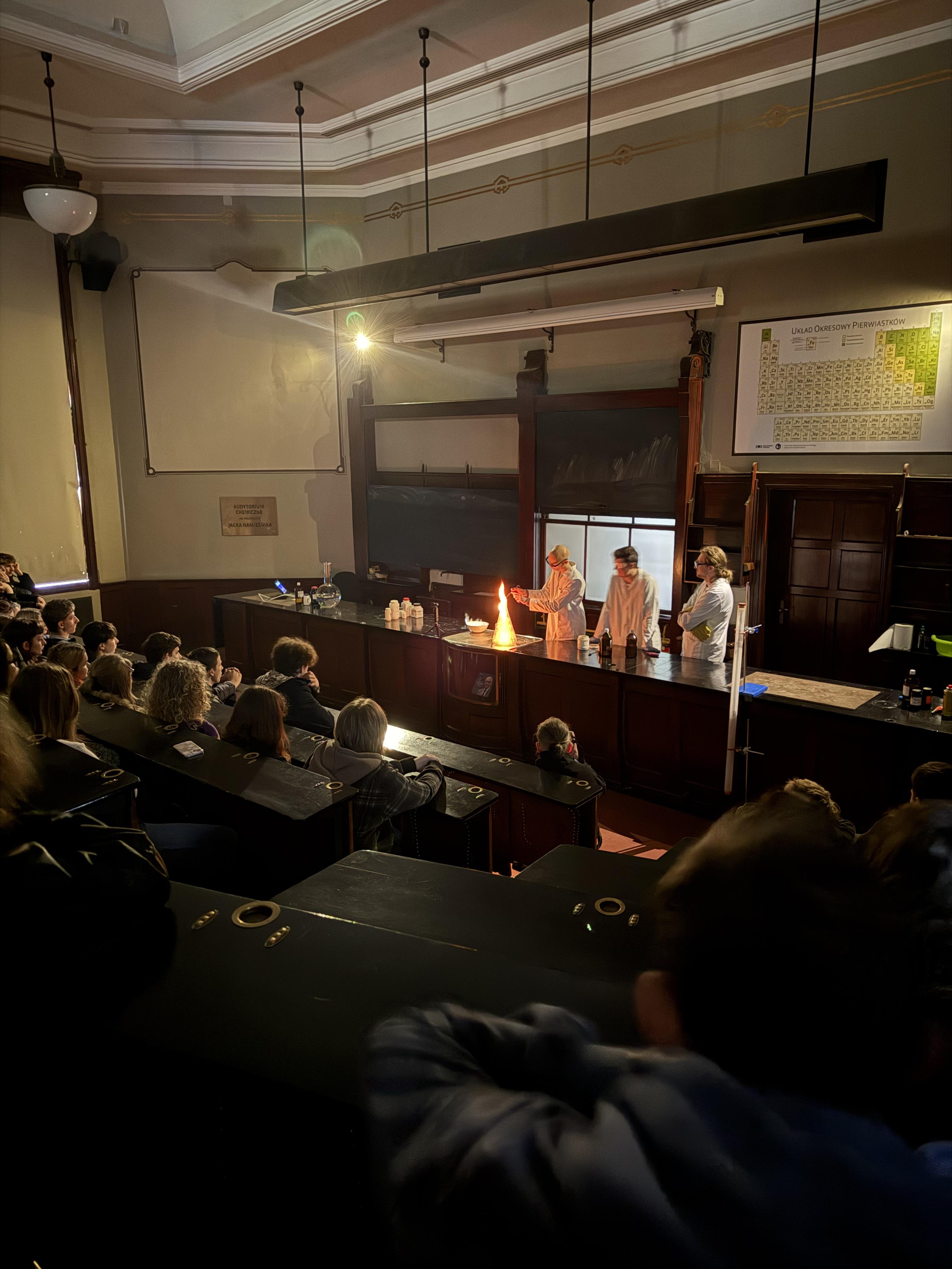 Uczniowie klasy 3 Ta – technik analityk oraz 3 TbCh - technik technologii chemicznej wraz z panią Magdaleną Łabuńską oraz panią Lucyną Bielińską-Sytek dnia 20 marca 2026 roku wzięli udział w Dniu Otwartym Wydziału Chemii Politechniki Gdańskiej. W trakcie wydarzenia uczniowie uczestniczyli w pokazach chemicznych pt. ”Chemia barw – na pograniczu nauki i magii”, które w ciekawy i dynamiczny sposób prezentowały doświadczenia chemiczne. Dodatkowo uczniowie mieli możliwość obserwowania pracy w nowoczesnych laboratoriach, a także rozmowy ze studentami i prowadzącymi zajęcia, co pozwoliło im lepiej zrozumieć specyfikę studiów na kierunkach chemicznych.