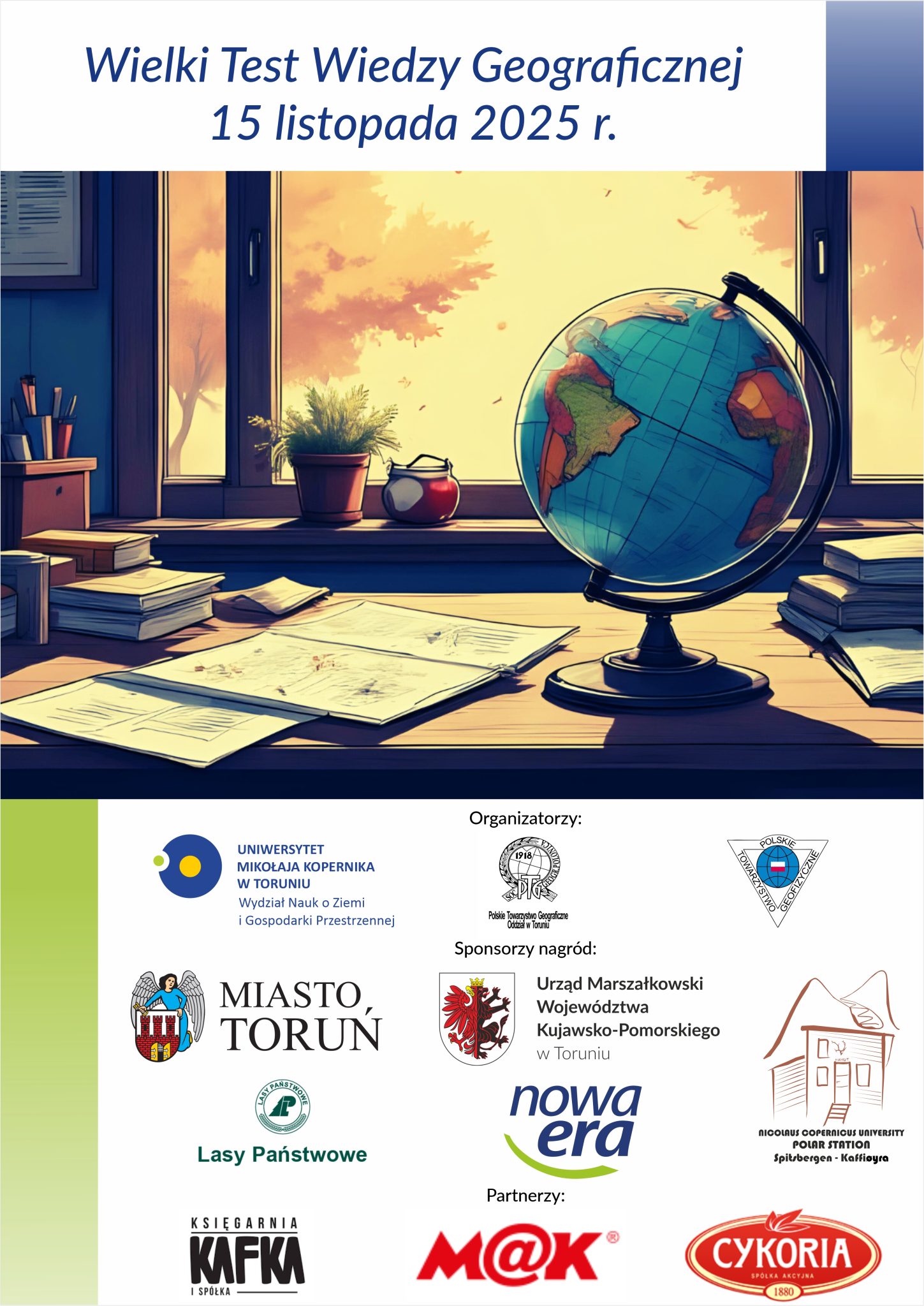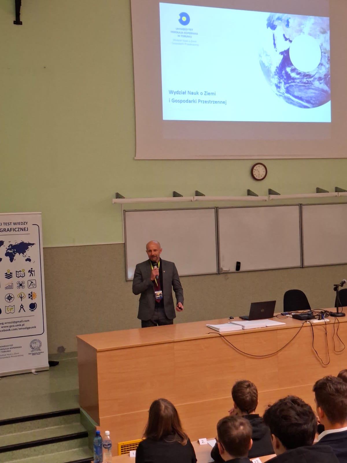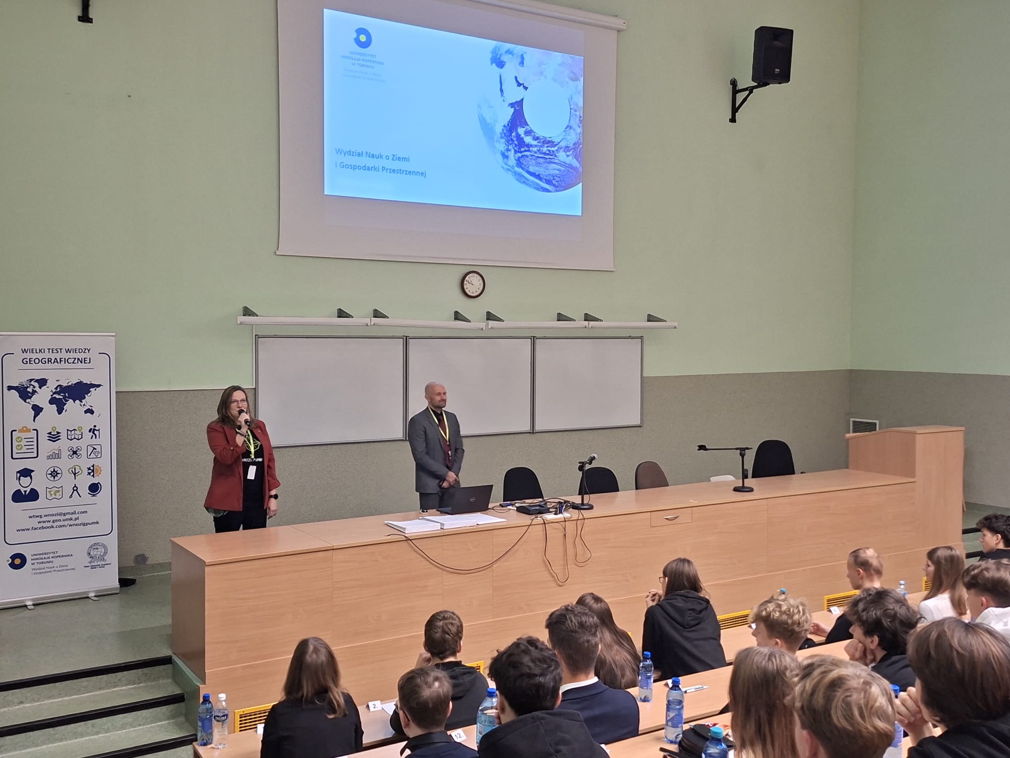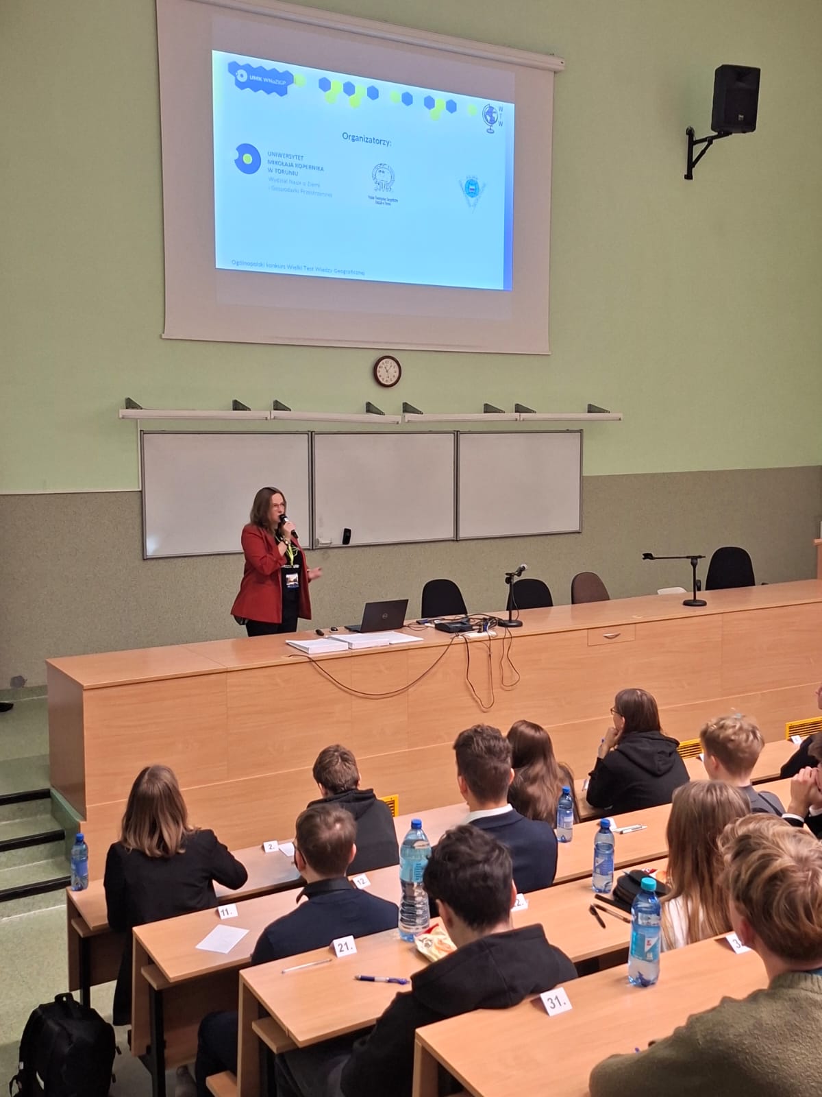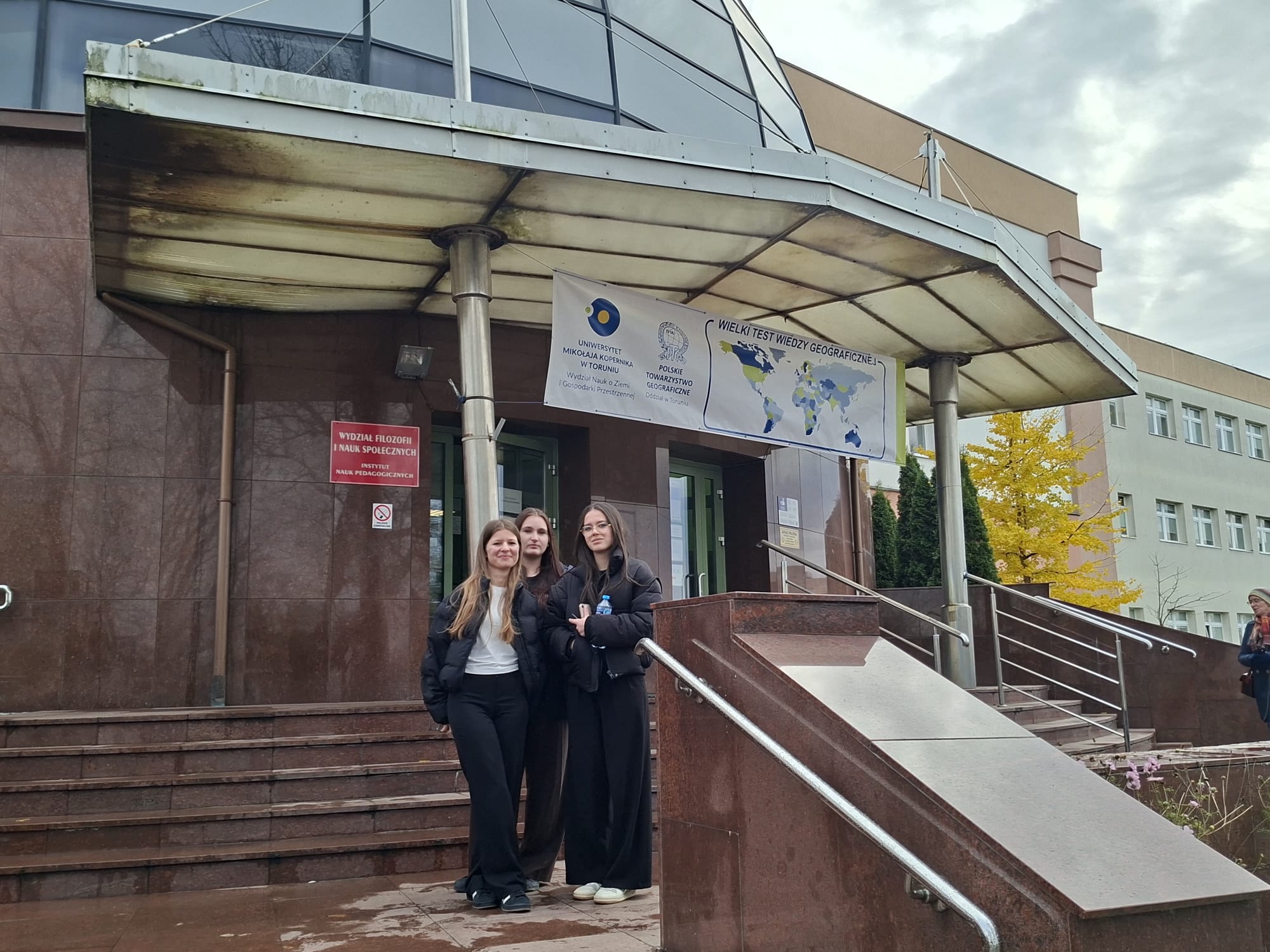 Uczennice naszej szkoły z klasy 5 Technik obsługi turystycznej - Agata Patelczyk, Oktawia Szultka i Julia Szydłowska uczestniczyły 15.11.2025r. w Ogólnopolskim Konkursie „Wielki Test Geograficzny”. Konkurs odbył się na Wydziale Nauk o Ziemi Uniwersytetu Mikołaja Kopernika w Toruniu, a udział w nim brało czterdzieści grup młodzieży w zespołach 3-osobowych ze szkół ponadpodstawowych z całej Polski.