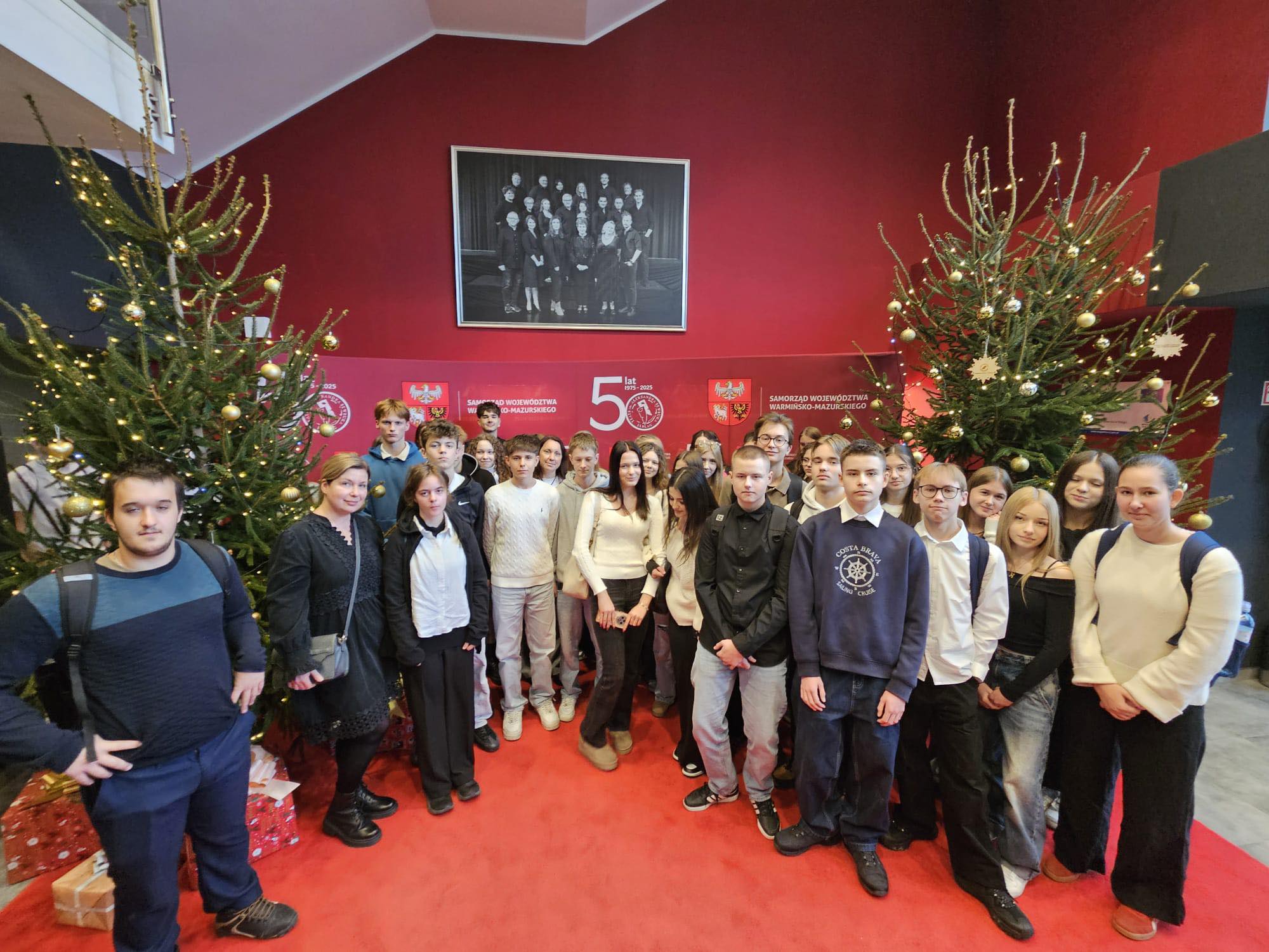 Dnia 18 grudnia 2025 roku uczniowie klasy I TE oraz I TT wraz z wychowawczyniami panią Lucyną Szczypior i panią Małgorzatą Świeczkowską, a także z wicedyrektorem szkoły, panem Andrzejem Prabuckim, uczestniczyli w wyjeździe do teatru w Elblągu. Uczniowie obejrzeli spektakl pt. „Opowieść wigilijna”.