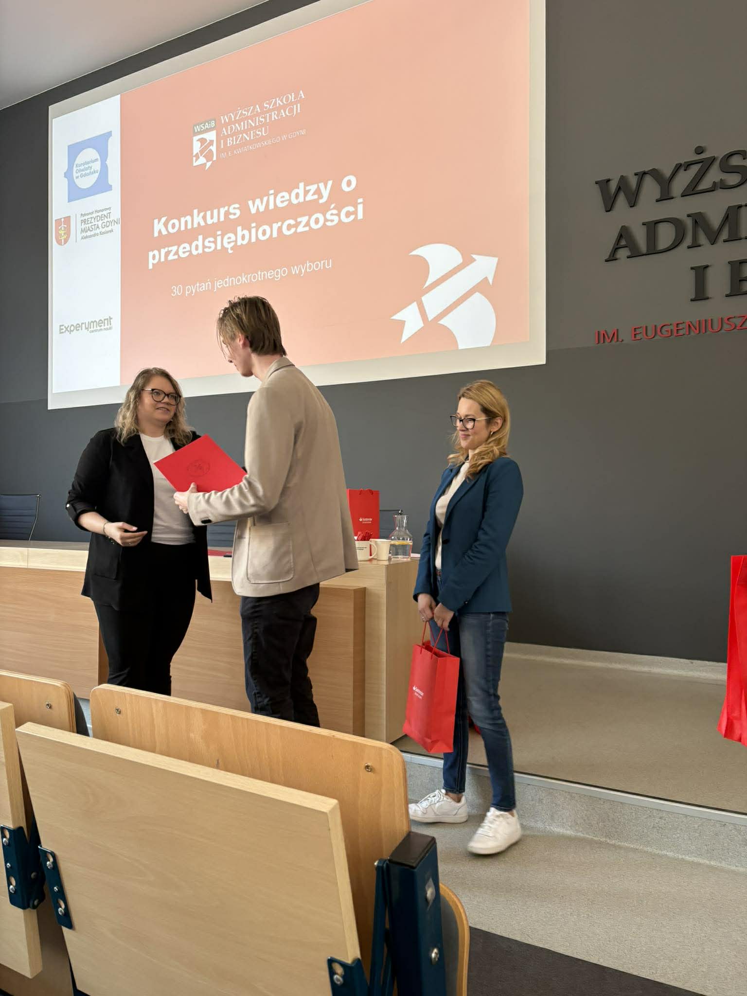 23 marca 2026 roku w Wyższej Szkole Administracji i Biznesu w Gdyni odbyła się XVI edycja Konkursu Wiedzy o Przedsiębiorczości. Naszą szkołę reprezentowali: Nikodem Żabiński, Julia Lewicka oraz Oliwier Domachowski. W wydarzeniu wzięło udział łącznie 86 uczestników z całej Polski.