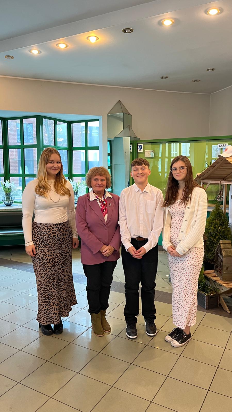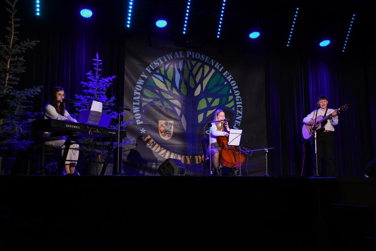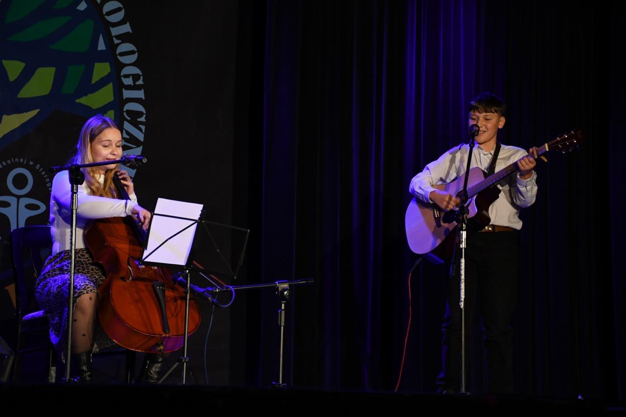 24 listopada 2025r. w Kinie Sokół odbył się finał Festiwalu Piosenki Ekologicznej, w którym naszą szkołę reprezentował zespół muzyczny w składzie: Alona Harkavchenko, Maria Gumuła (kl. 4TR) oraz Oliwier Gilla (kl. 1TL) wykonujący, z własnym akompaniamentem, utwór WODYMIDAJ.