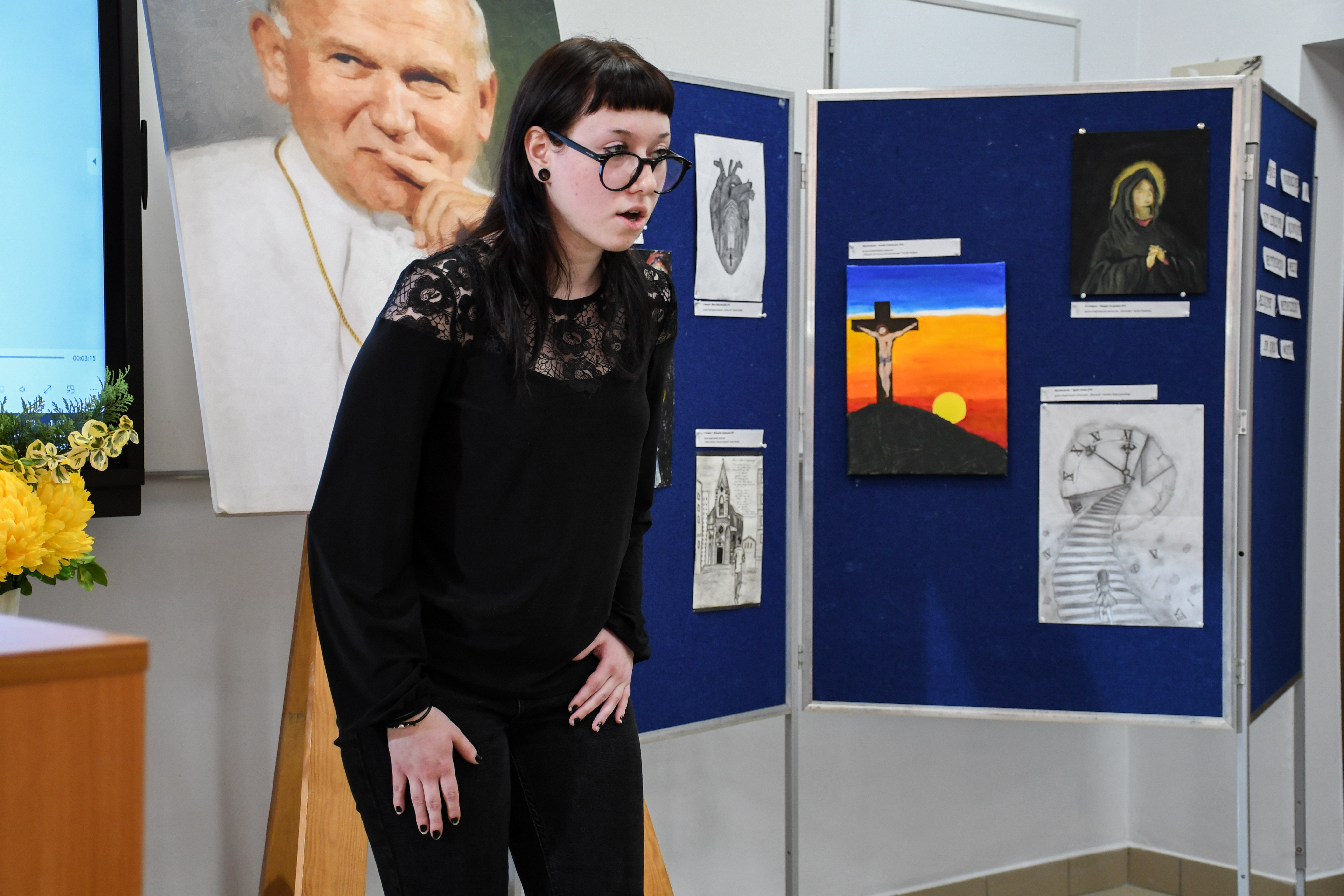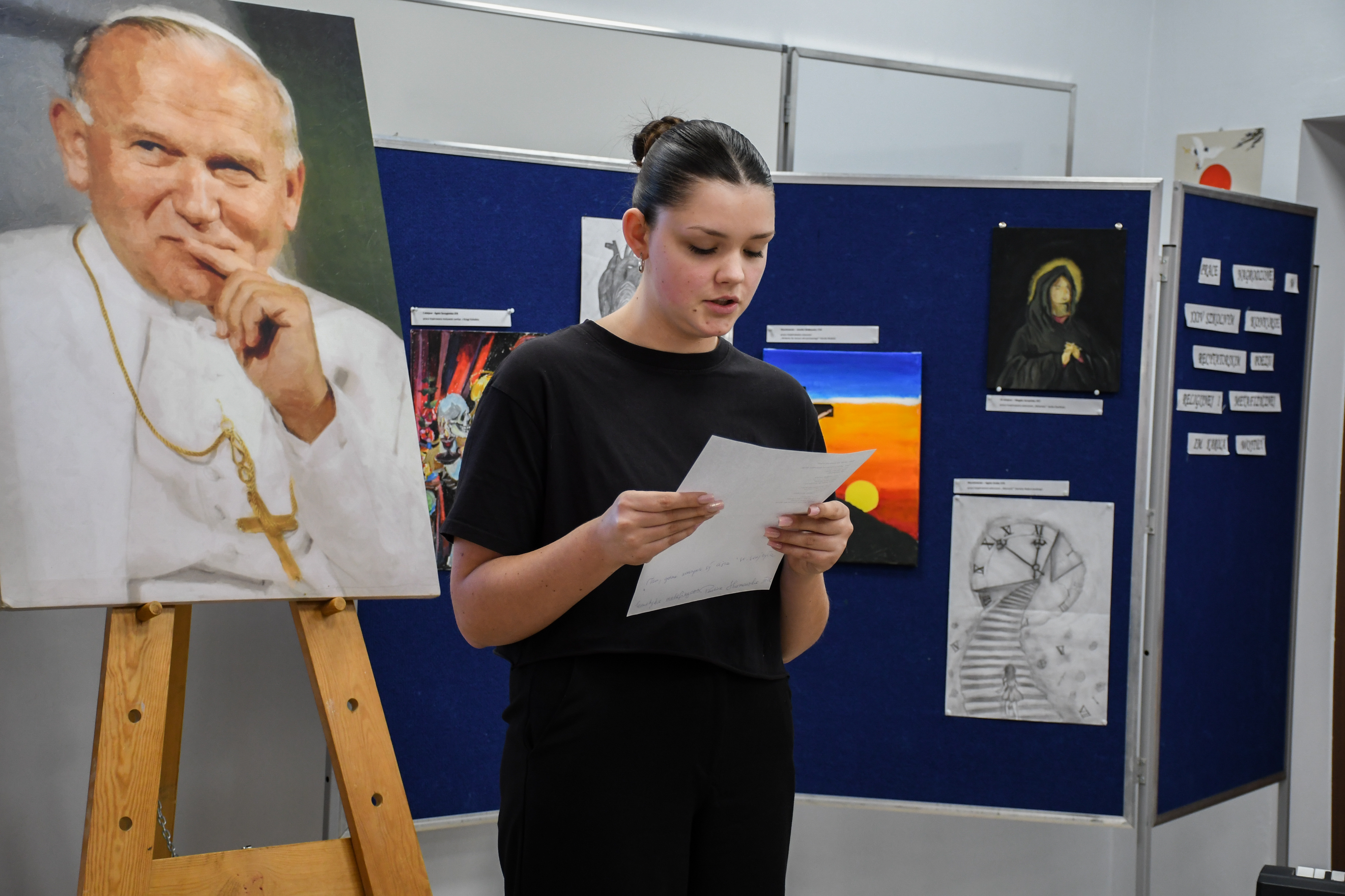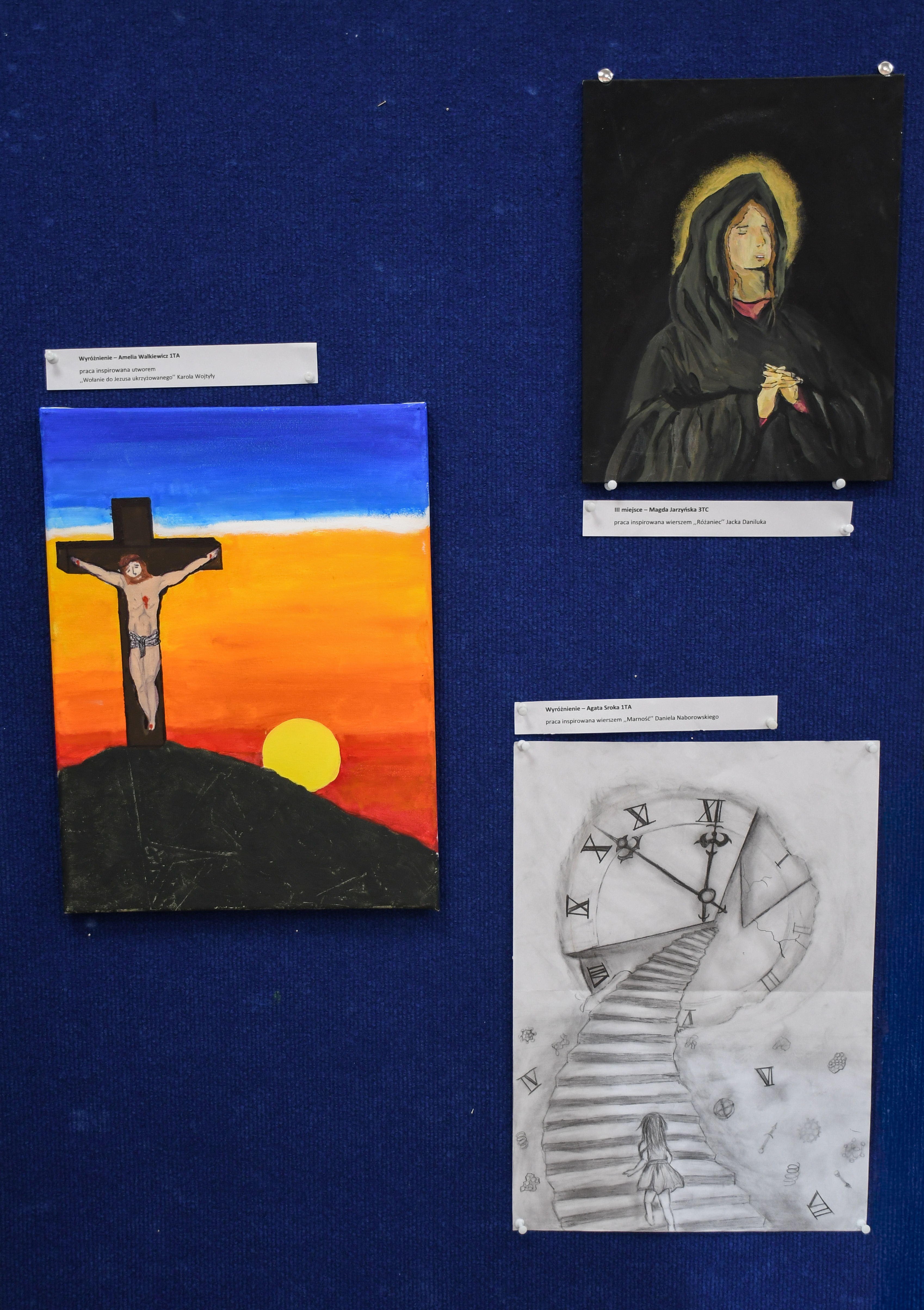 Uczestnicy recytowali wiersze Karola Wojtyły – św. Jana Pawła II oraz innych poetów, podejmujących tematykę duchowości i ludzkiego losu. Uczniowie o artystycznych pasjach stworzyli własne utwory literackie i prace plastyczne inspirowane poezją religijną, starając się wyrazić w nich swoją wiarę i wrażliwość.