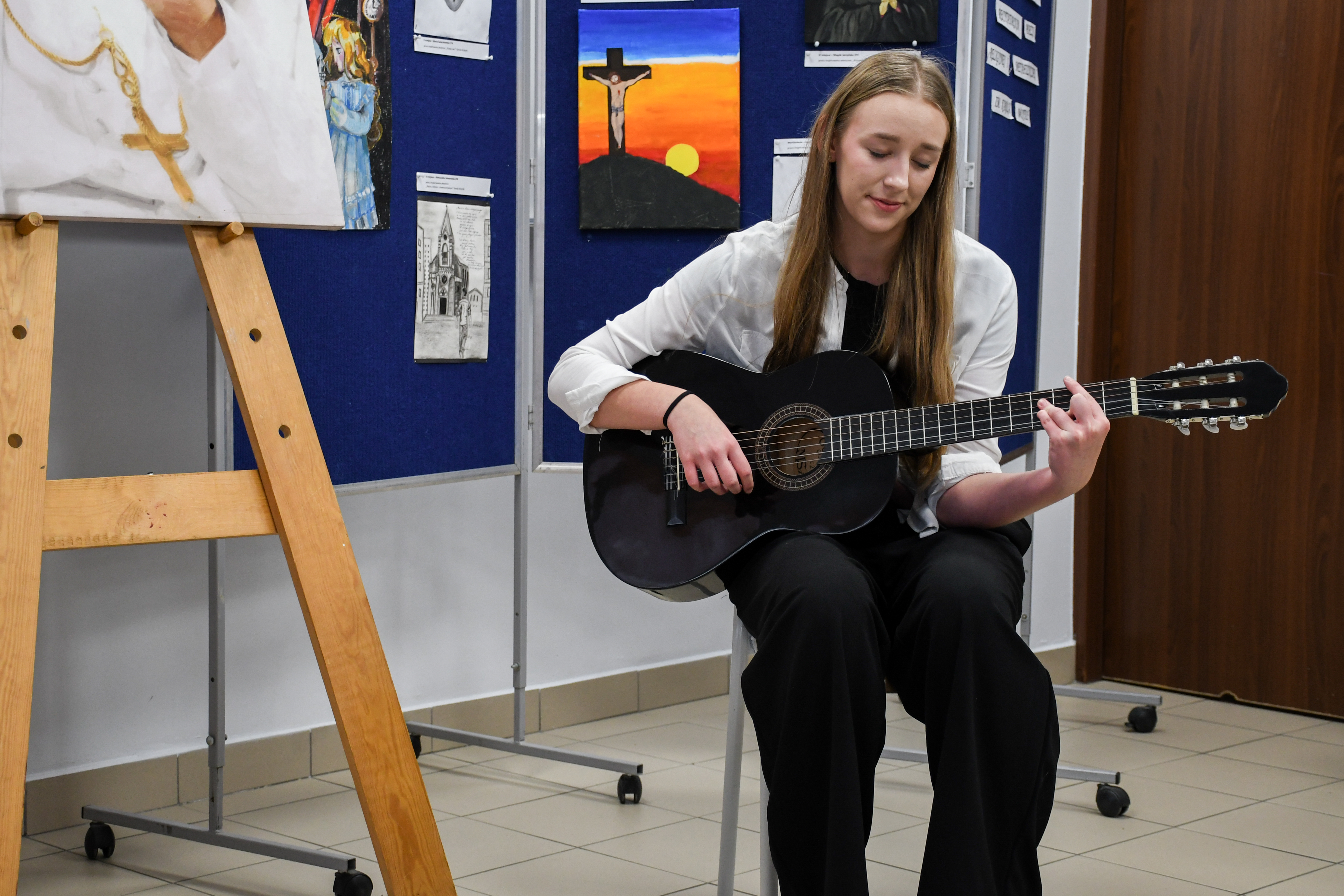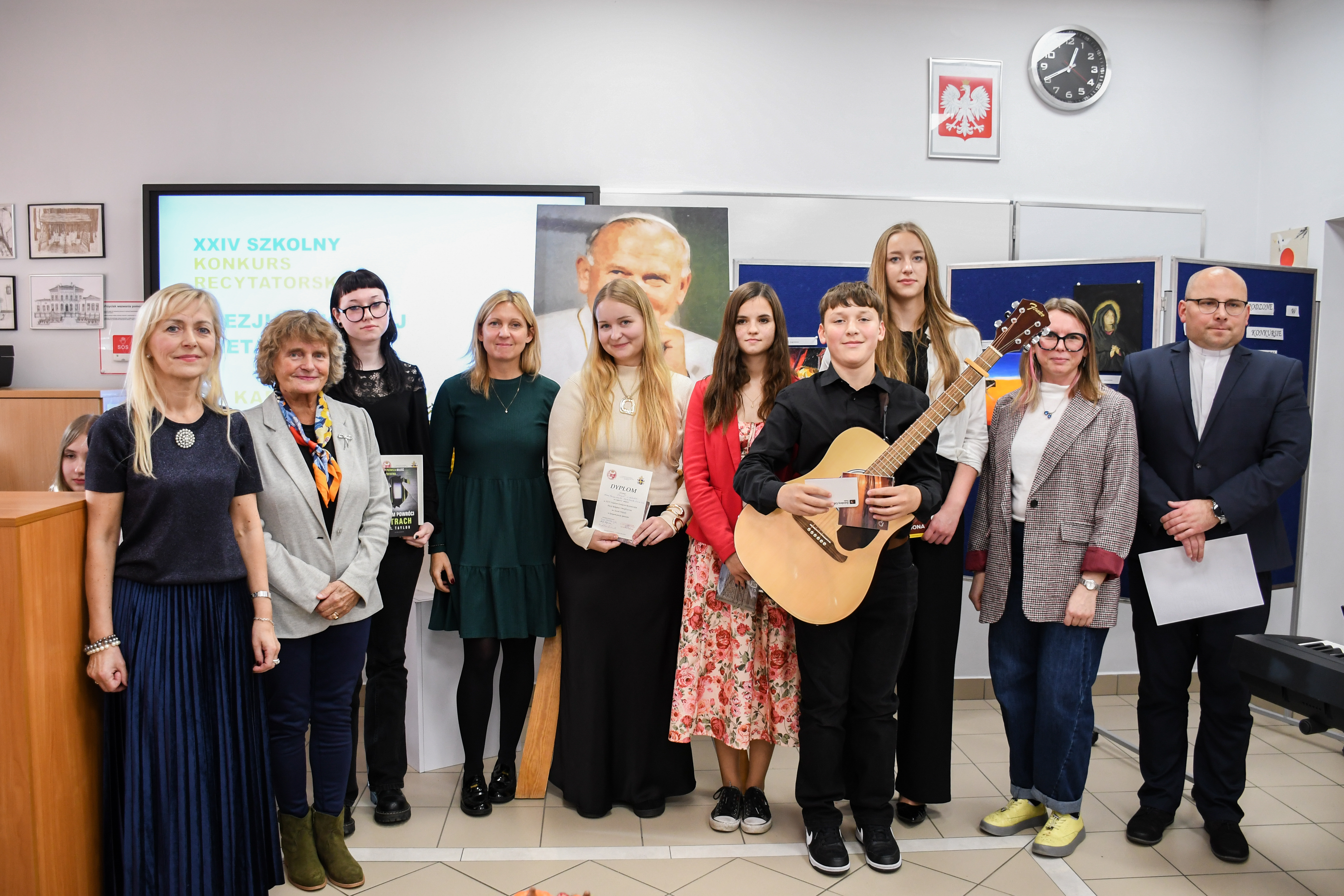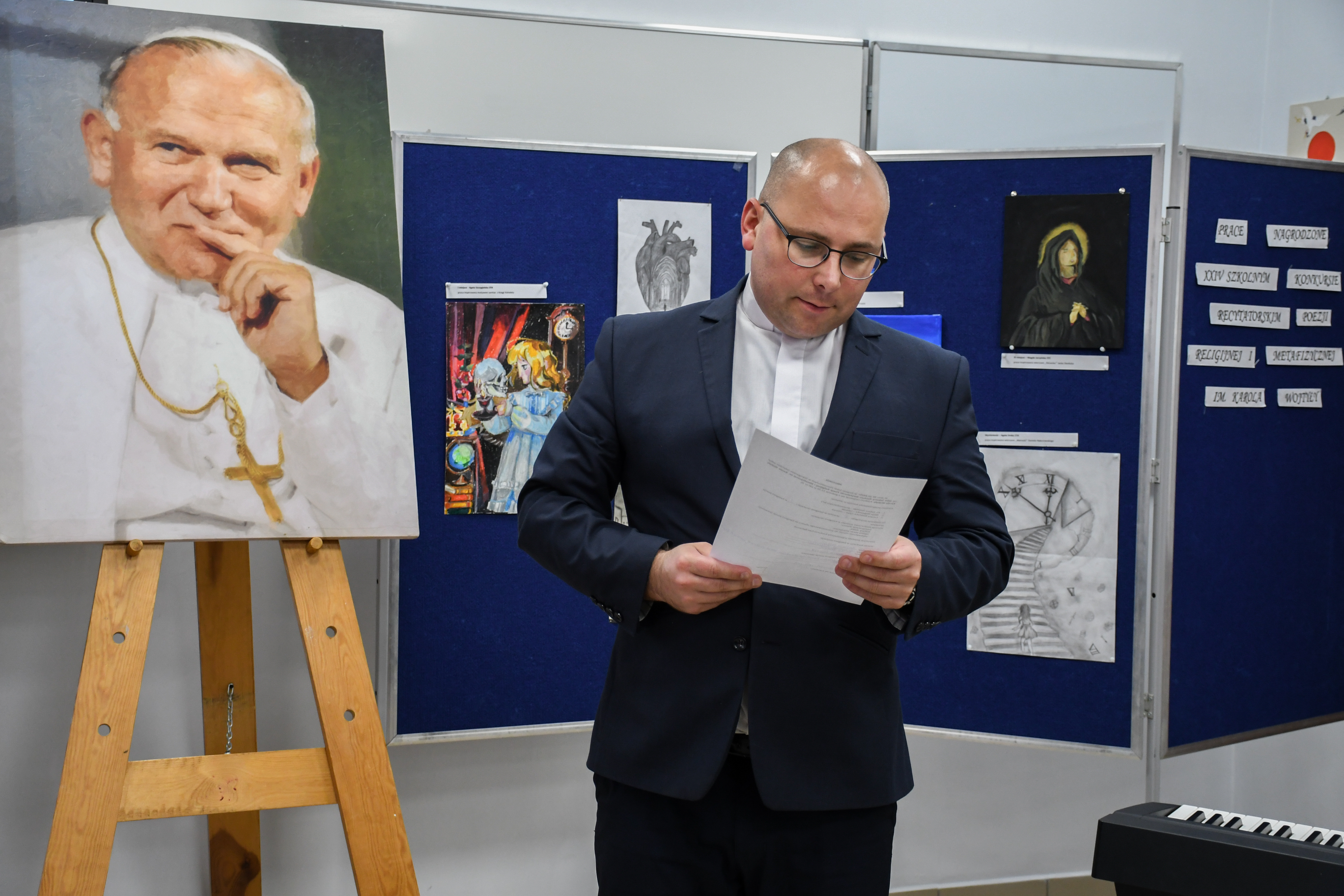 Uczestnicy recytowali wiersze Karola Wojtyły – św. Jana Pawła II oraz innych poetów, podejmujących tematykę duchowości i ludzkiego losu. Uczniowie o artystycznych pasjach stworzyli własne utwory literackie i prace plastyczne inspirowane poezją religijną, starając się wyrazić w nich swoją wiarę i wrażliwość.