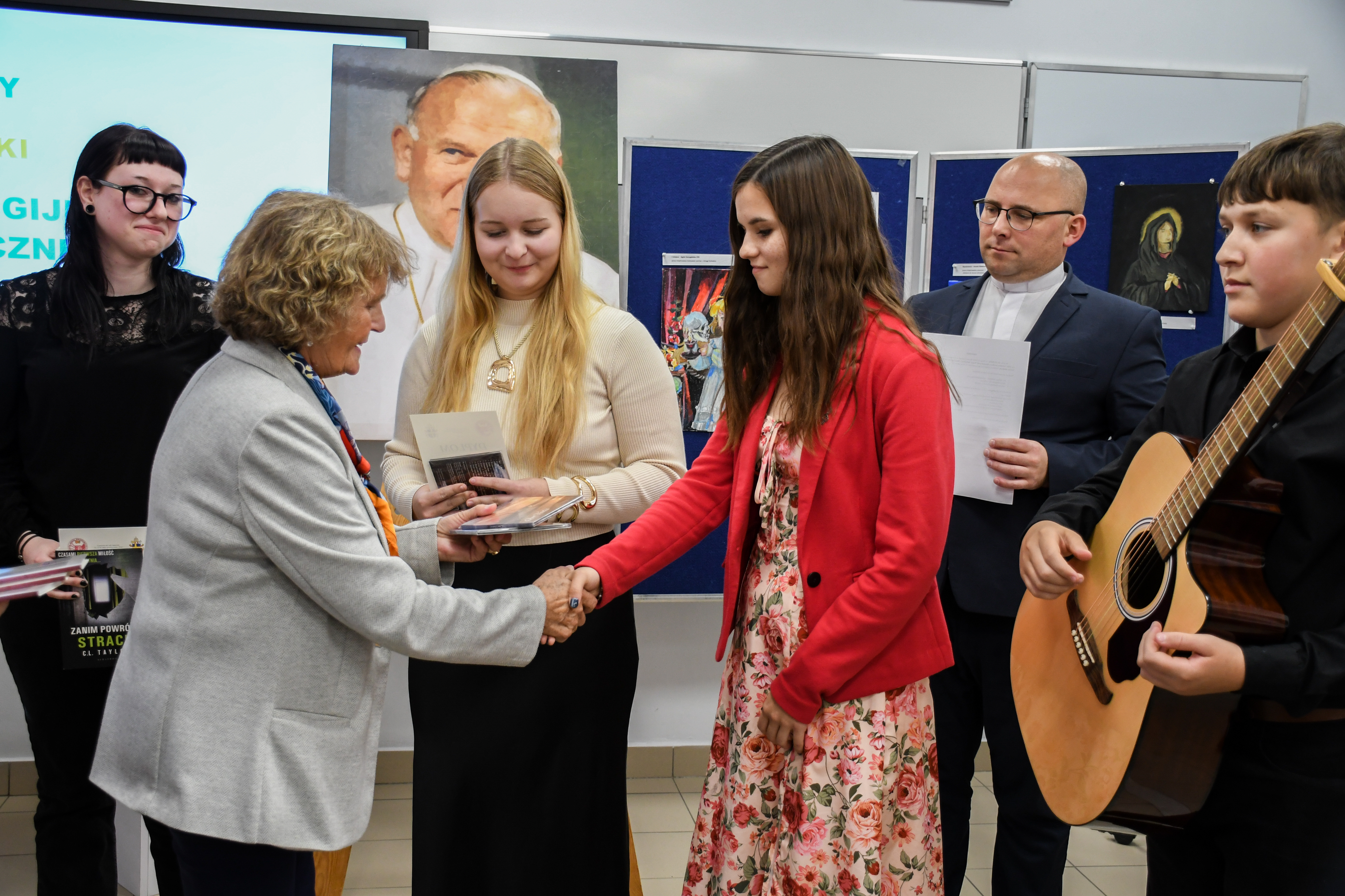 Zwycięzcy konkursu otrzymali dyplomy i nagrody ufundowane przez Radę Rodziców oraz Wydział Katechetyczny Kurii Diecezjalnej w Pelplinie. Ich wręczenia dokonała pani wicedyrektor Stanisława Głąb-Brandt, gratulując laureatom odwagi, talentu i wrażliwości.